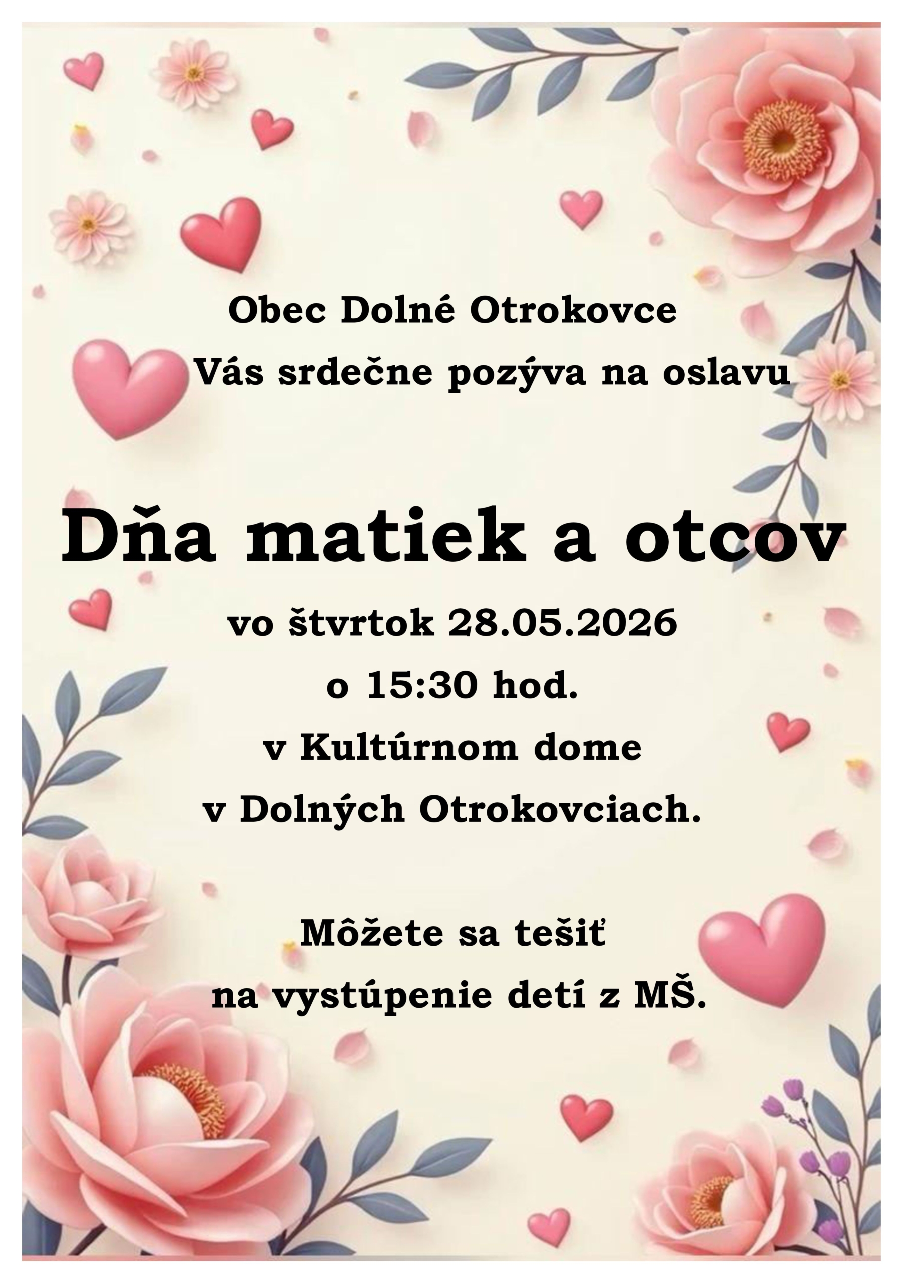 - Deň matiek a otcov 2026 29. apríla 2026